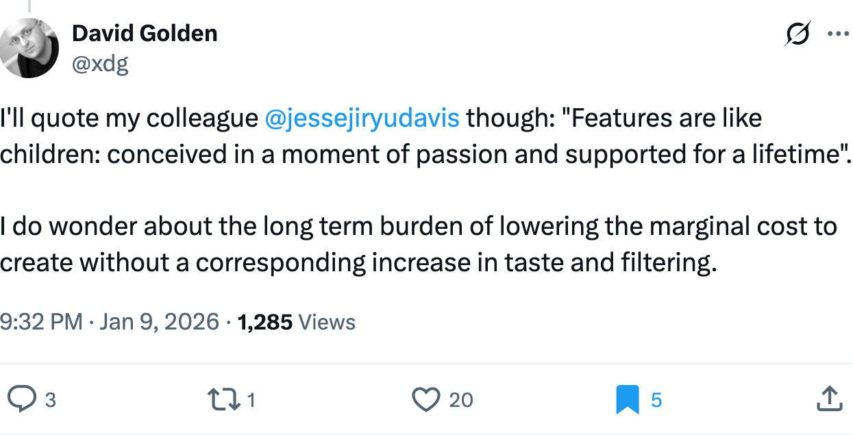 El autor defiende que lo que desplaza el valor de “escribir código” hacia el criterio, la definición del problema, la validación, la calidad y la distribución. Simón también nos recuerda que en un mundo donde construir es cada vez más fácil, decidir bien qué construir sigue siendo lo verdaderamente escaso.