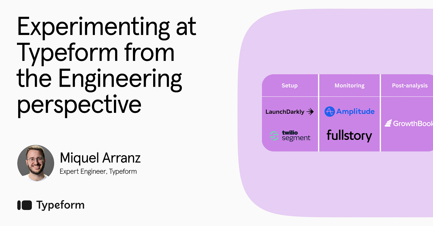 🇬🇧 (7’) Miquel Arranz, Expert Frontend Engineer en Typeform, resume cómo trabajar en un equipo guiado por datos le enseñó que un buen entorno de experimentación es clave para tomar decisiones de producto con impacto real. Explica, con un ejemplo reciente, cómo definen hipótesis y métricas, configuran tests A/B con feature flags, monitorizan problemas habituales y analizan resultados con herramientas como LaunchDarkly, Amplitude o GrowthBook.